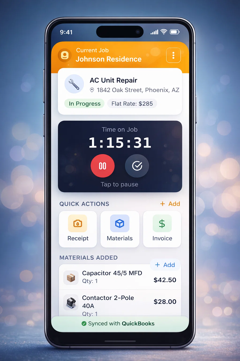 The expensive software (ServiceTitan, etc.) is built for big companies with dedicated office staff. The cheap stuff doesn't sync properly with QuickBooks. So we decided to build what we wished existed—a simple mobile app that just works.